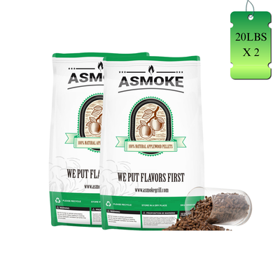 ASMOKE Premium 100% Pure Apple Wood Pellets for Smoking & Grilling – 5LBS×8 Pack 40lbs Total | Natural Sweet & Fruity Flavor | BBQ, Pellet Grill Fuel