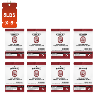 ASMOKE 100% Pure Cherry Wood Pellets 5 lbs × 8 – Premium BBQ Smoking Pellets for Grilling & Smoking, Natural Hardwood Flavor for Smoker Grills, Compatible with Pellet Smokers and Grills (40 lbs Total)