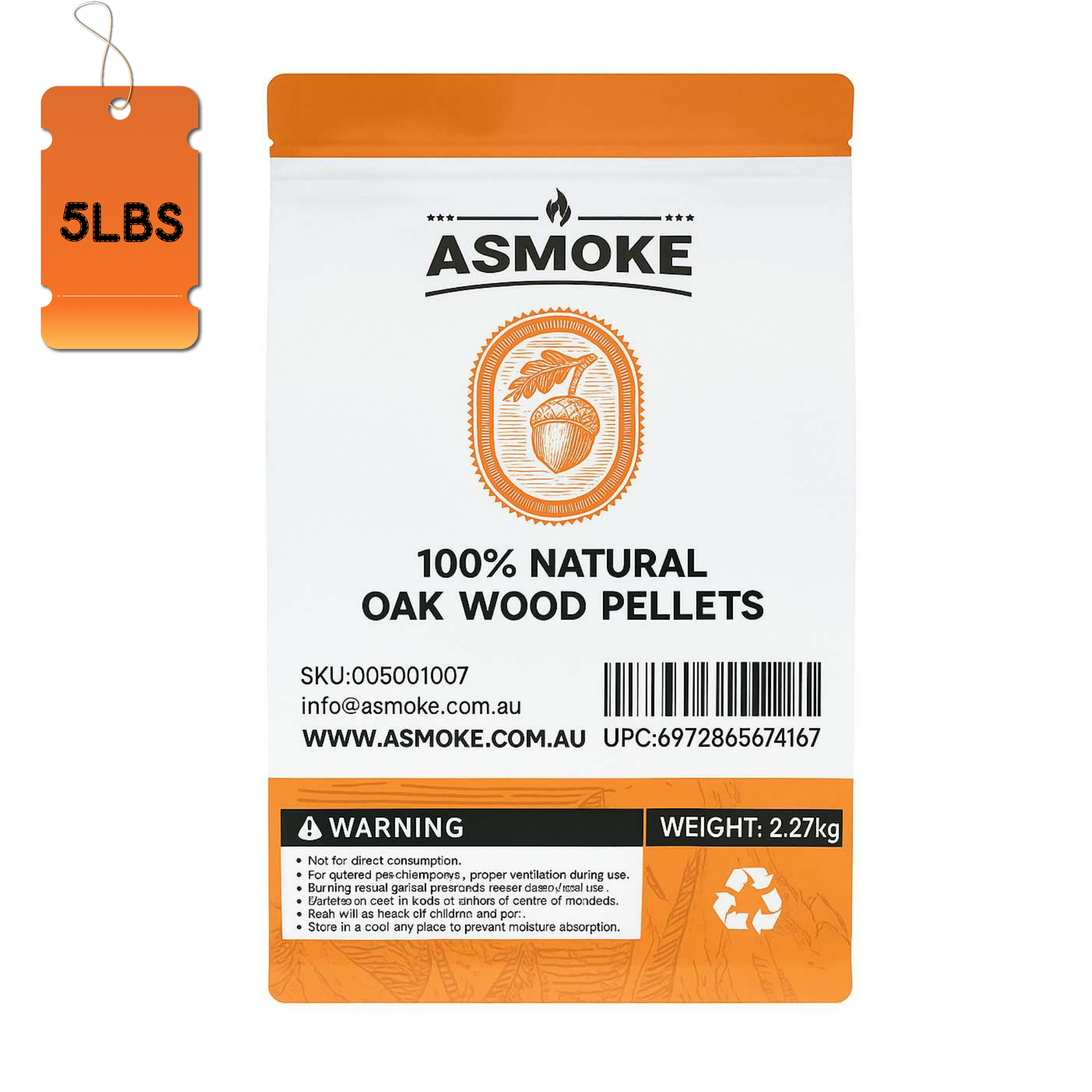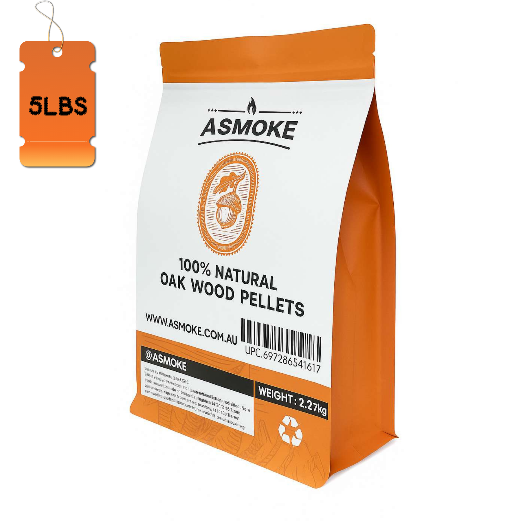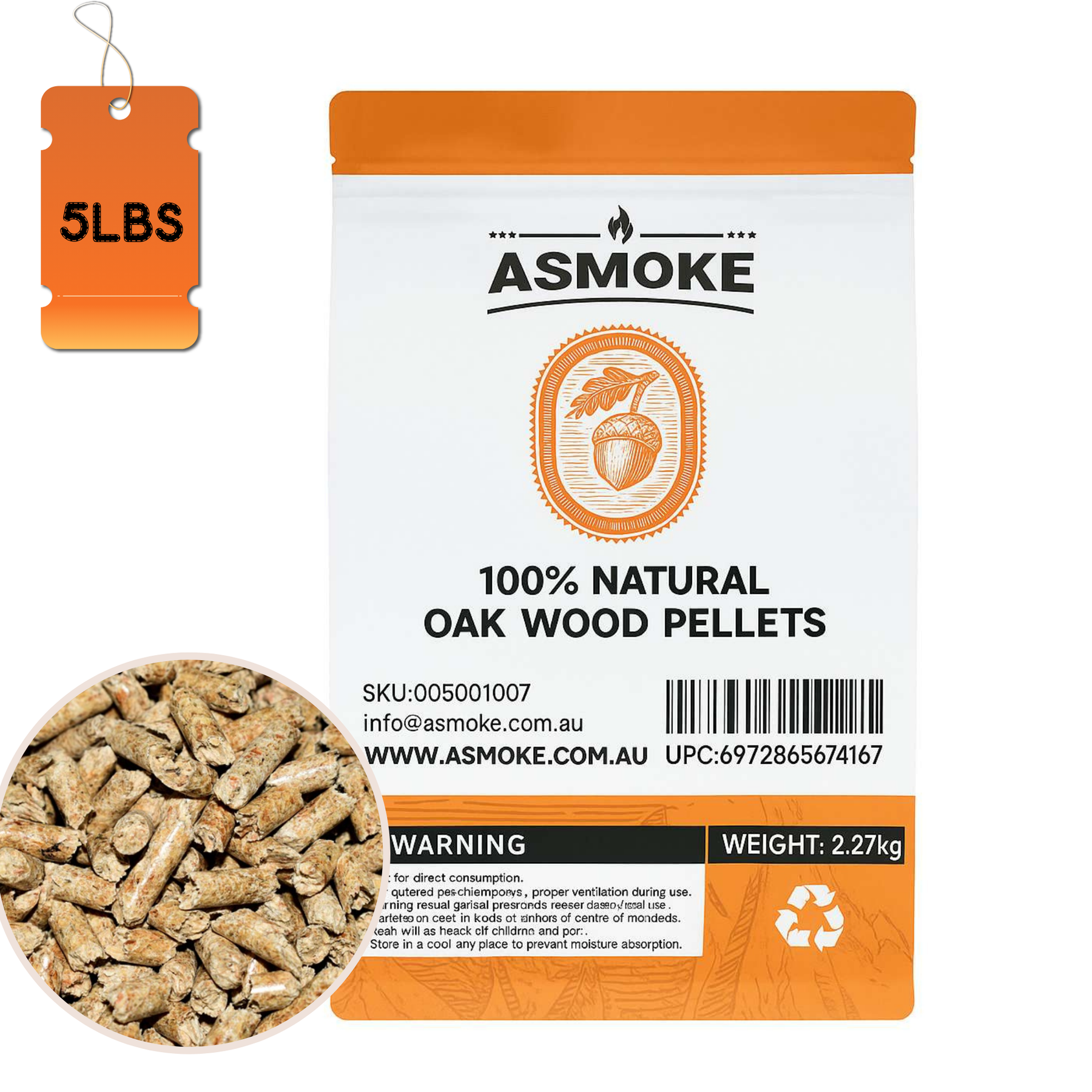ASMOKE Premium Oak Wood Pellets 5LBS×8 Pack (40LBS Total) – Hardwood Smoking Pellets for BBQ, Pellet Grill & Smoker | Bold, Earthy Flavor | Low Ash, High Heat